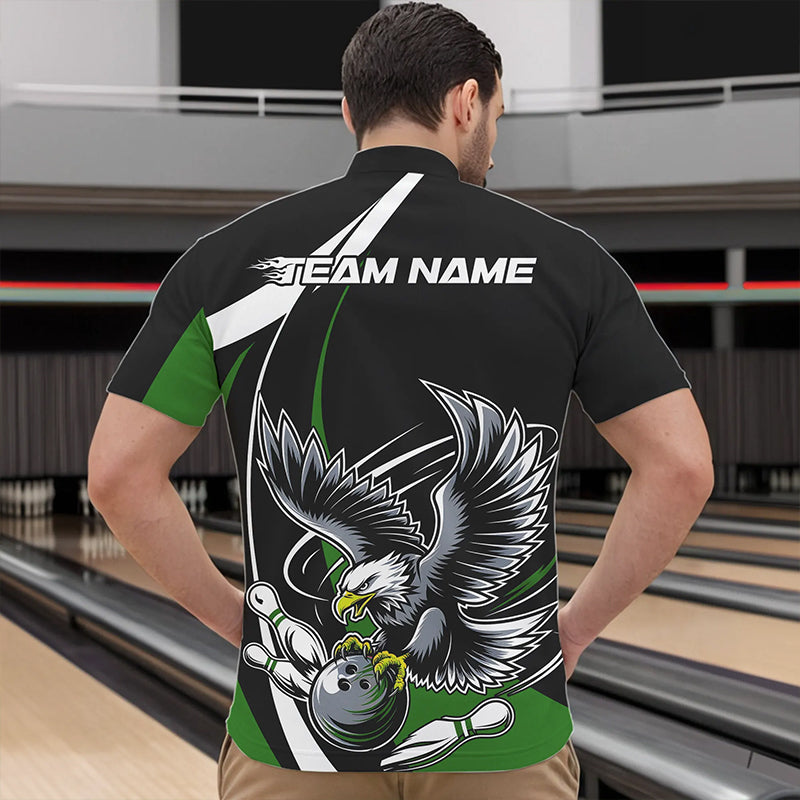 Custom Black And Green Eagle Bowling Men Quarter-Zip Shirts, Eagle Bowling Team Jerseys IPHW8735