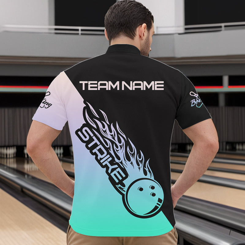 Green And Purple Custom Strike Bowling Quarter-Zip Shirts For Men, Bowling Team Shirt Bowler Outfit IPHW8824
