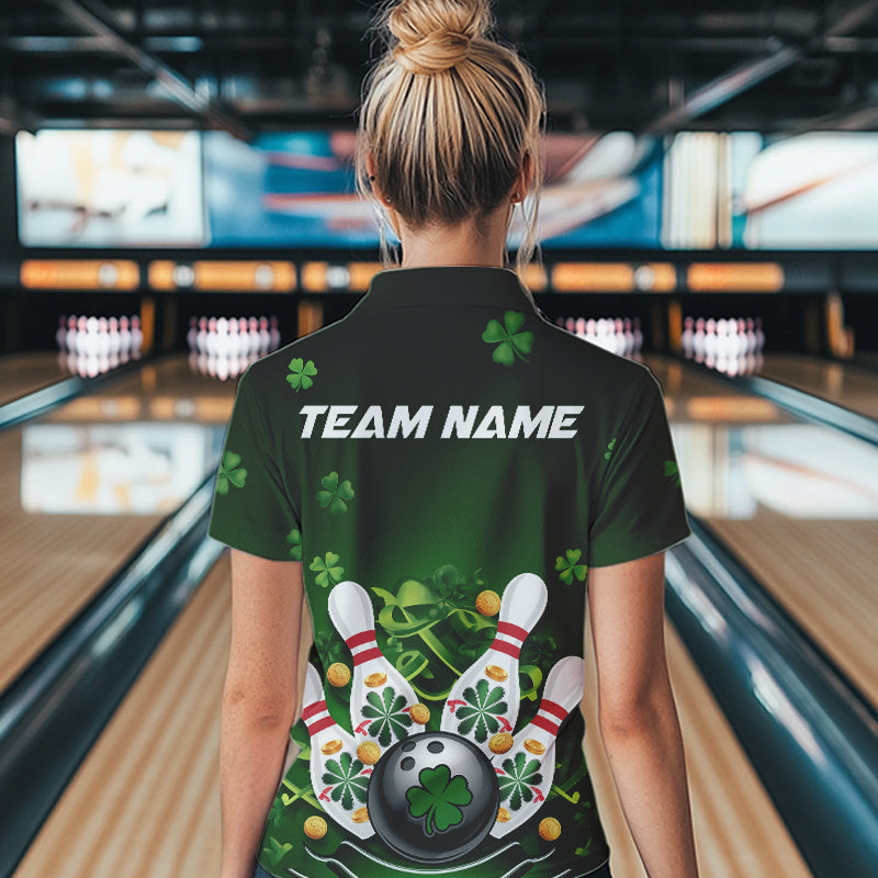 Custom Green St Patrick'S Day Bowling Team Quarter-Zip Shirts For Women IPHW8374