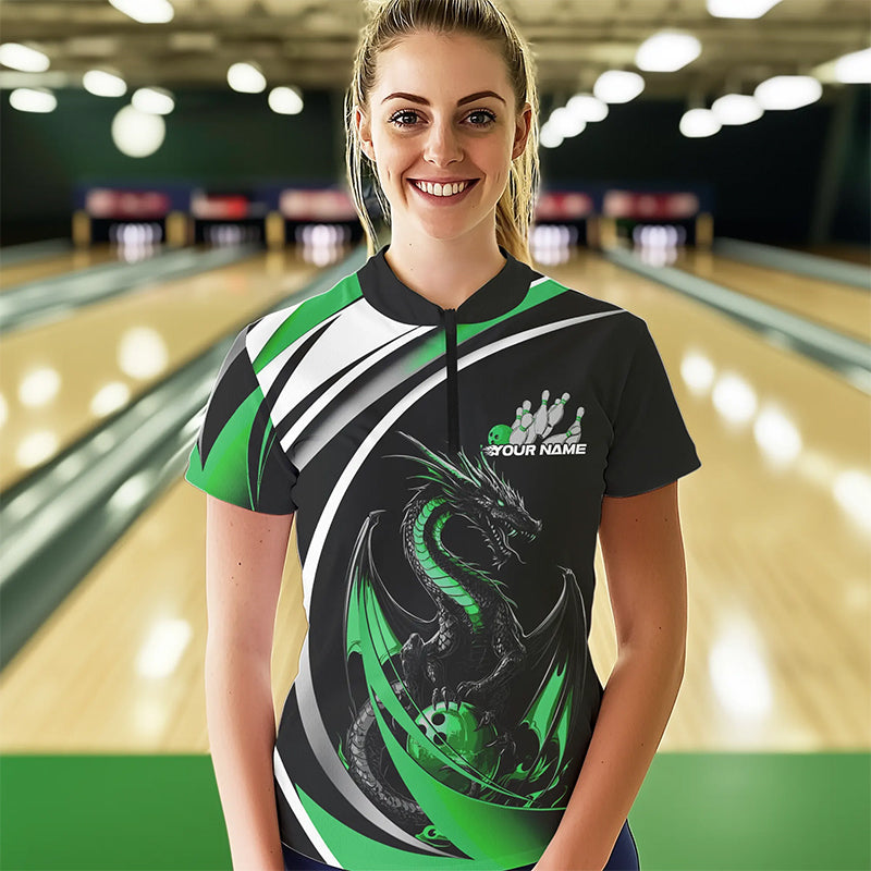 Custom Black And Green Dragon Bowling Jerseys, Dragon Bowling Team Womens Quarter-Zip Shirt IPHW8652