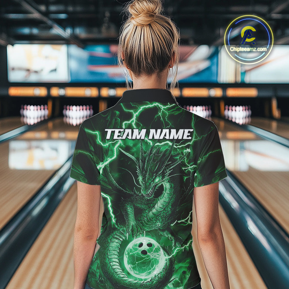 Custom Green Thunder Lightning Dragon Bowling Quarter-Zip Shirts For Women, Team Uniform IPHW9759