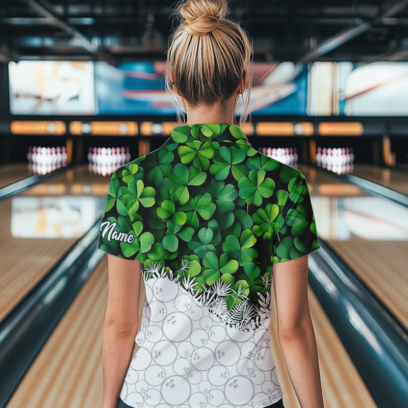 Women Bowling Shirts custom Green clover white bowling camo St Patrick Day Bowling attire for ladies NQS9501