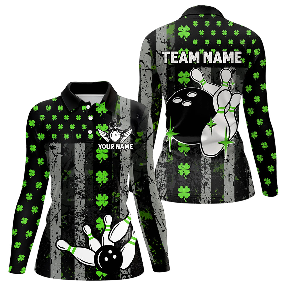 Green Shamrock Grunge US Flag Patriotic Bowling Shirts For Women Custom St Patrick Day Bowling Jersey TDM3545