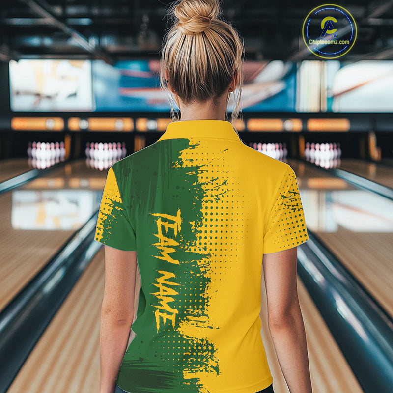 Yellow and Green Bowling Polo, Quarter Zip shirts for Women Custom Bowling Team Jerseys NQS10881