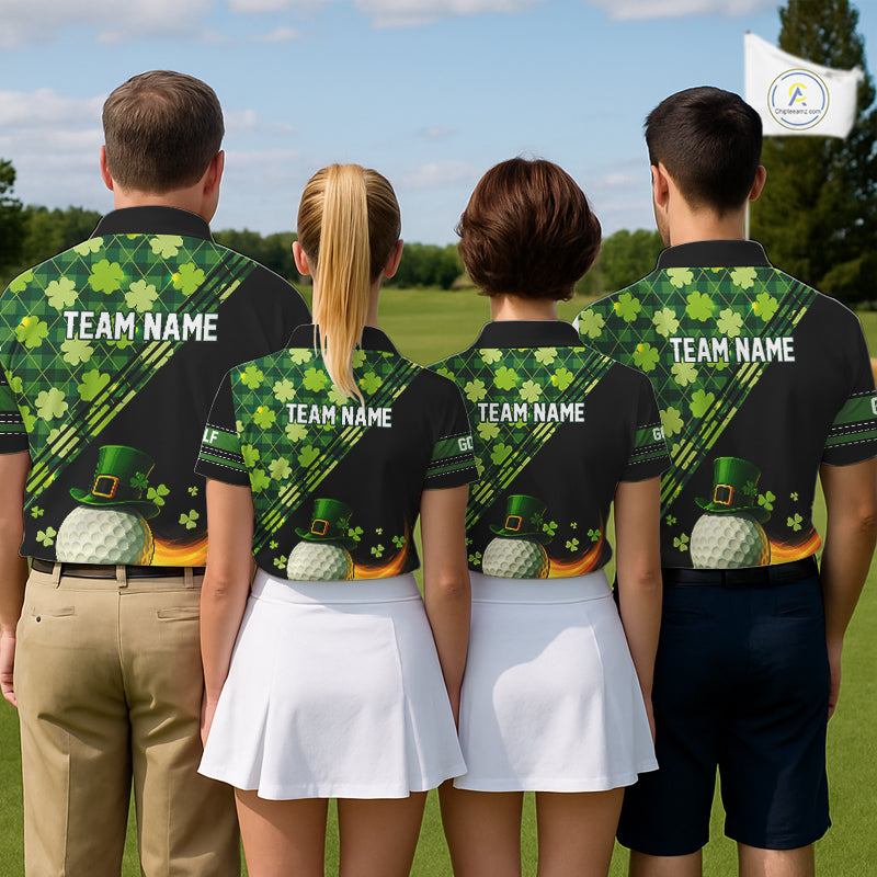 Black and Green shamrock argyle pattern Golf Polo Shirts For Men Custom St Patrick mens golf top NQS11238