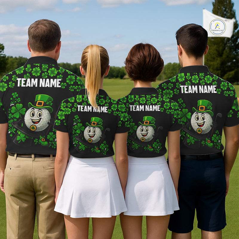 Black and Green Shamrock Funny Golf Polo Shirt For Men Custom St Patrick's Day mens golf outfit NQS11164