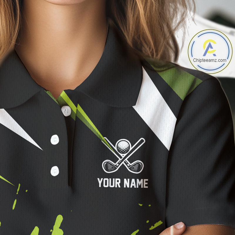Black and Green Skull Golf polo shirts for Women Custom team golf outfits ladies, cool golf gifts NQS10025