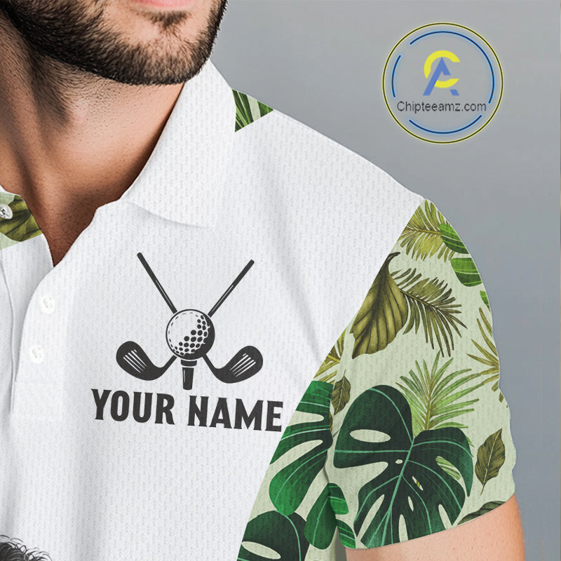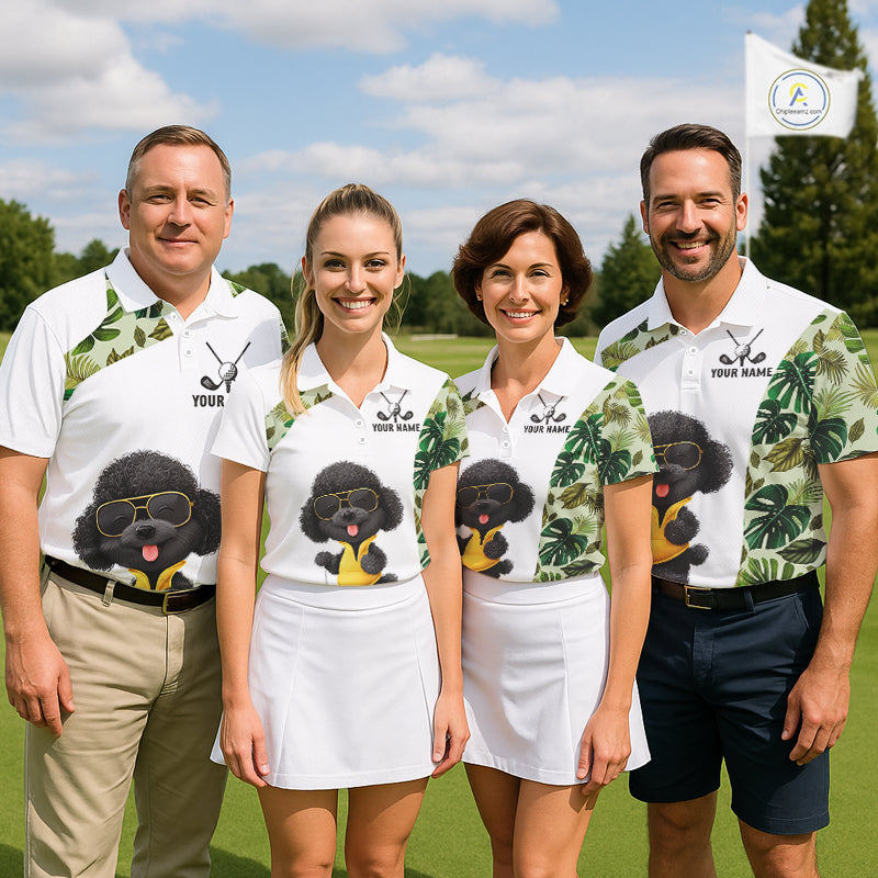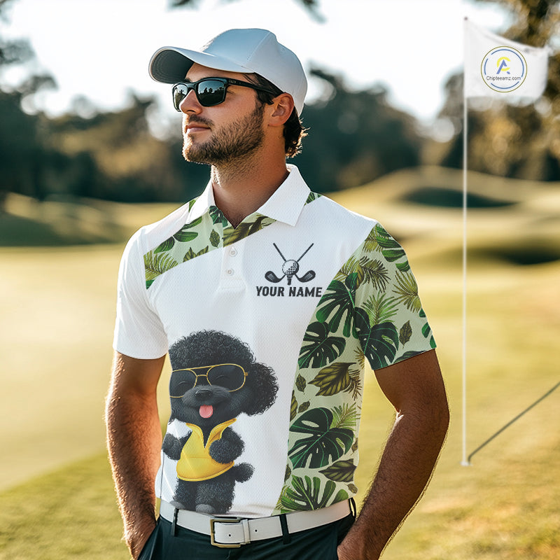 Funny Mens Golf Polo Shirt Green Tropical Pattern Custom Golf Clubs Shirts, Poodle Dog Lover Gift NHN0067
