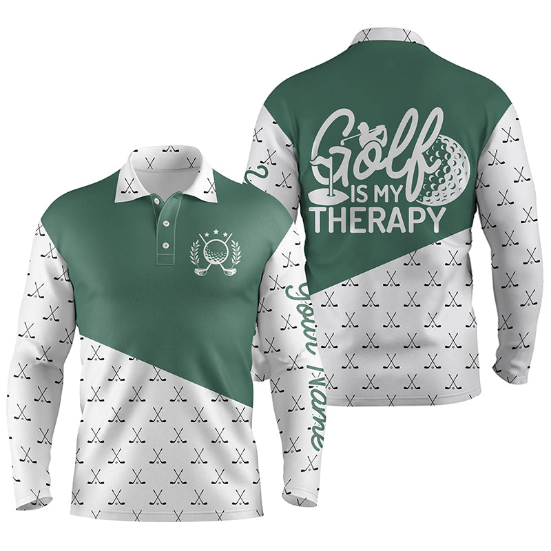 Golf is my therapy Mens golf polos shirts custom name green golf clubs pattern golf shirts for men NQS5155