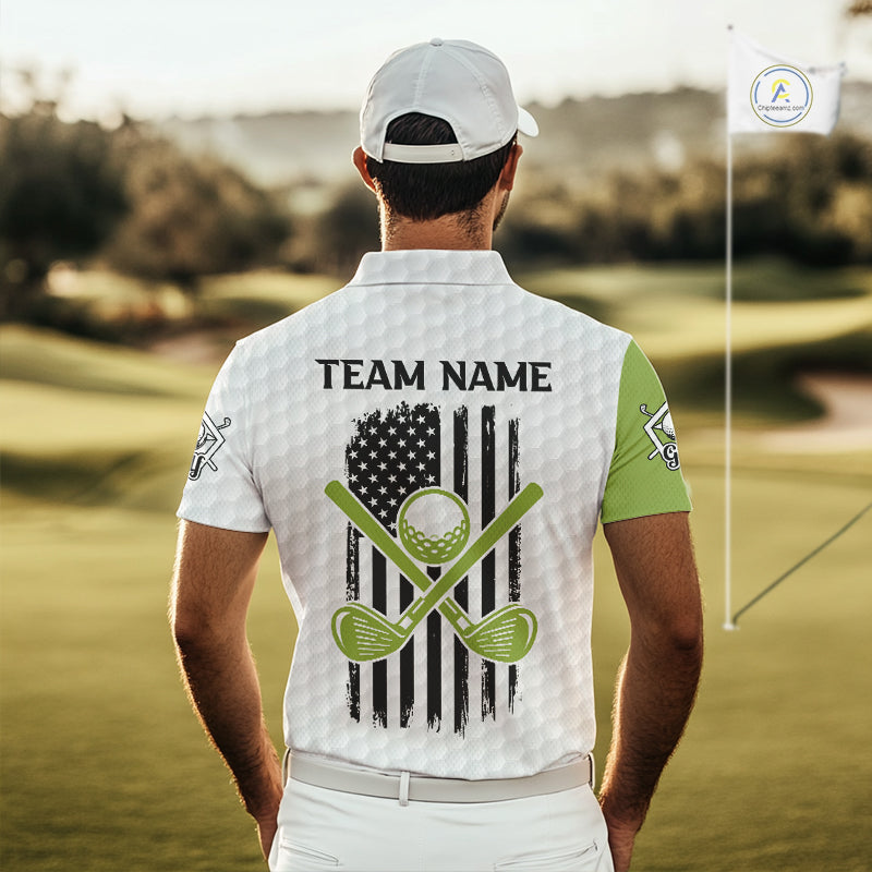 Green and White American Flag Golf Polo shirt for Men Custom patriotic golf team uniform outfit NQS9796