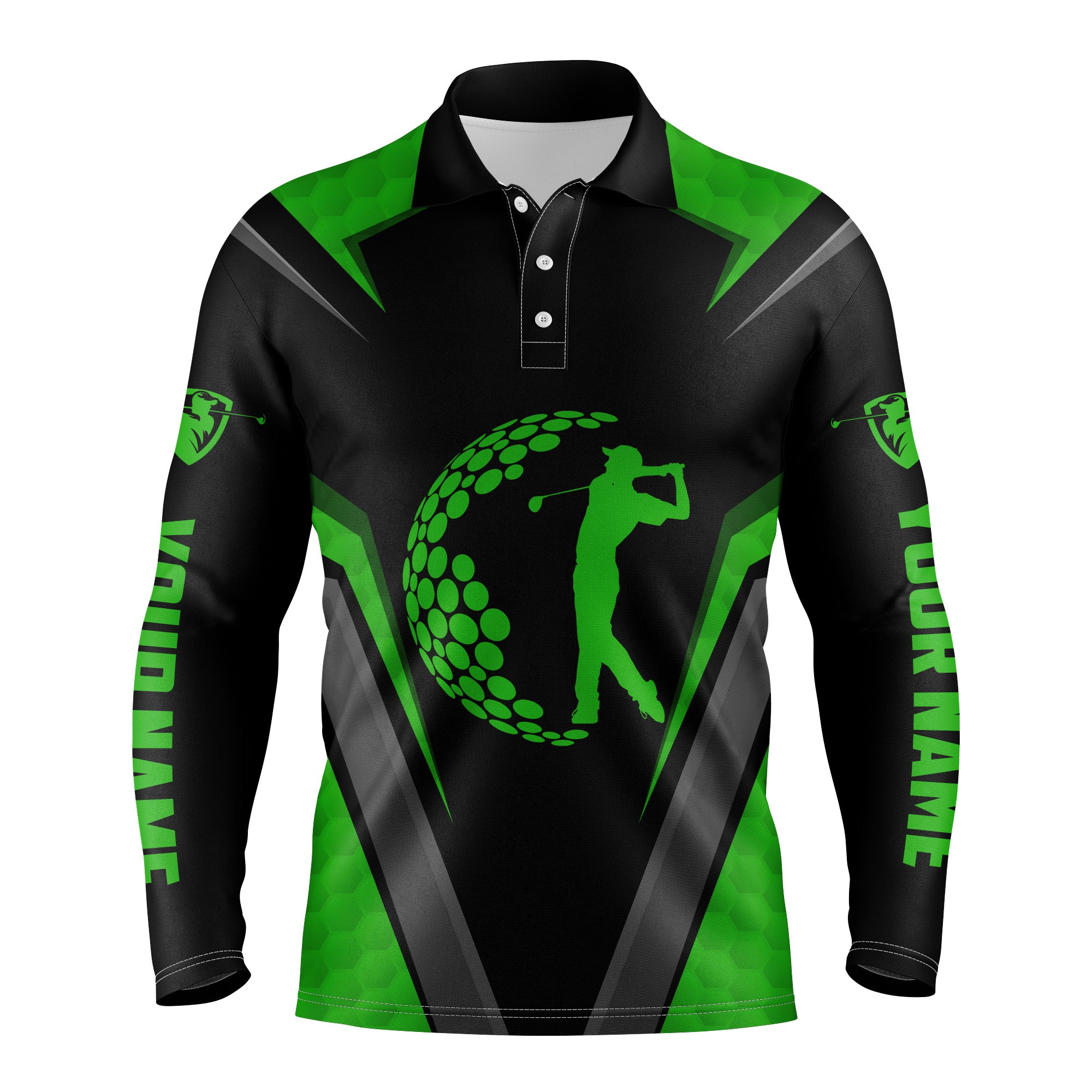 Green black long sleeve golf polo shirts, golf shirts for men, custom gifts for golf lovers NQS3331