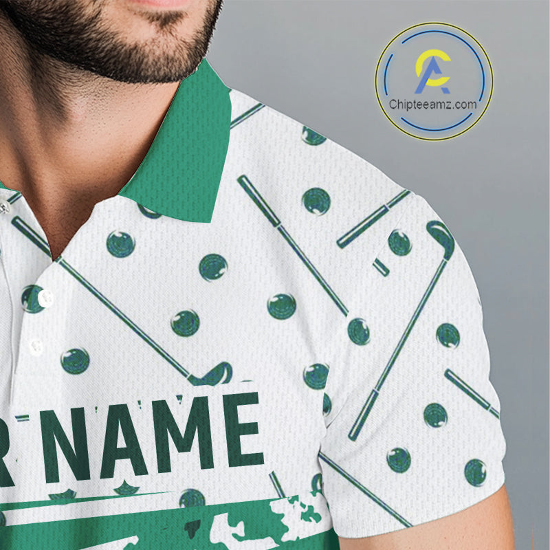 Green Golf Clubs Mens Golf Polo Shirt Custom Name Camo Pattern Golf Shirts Custom Team Golf Top NHN0017