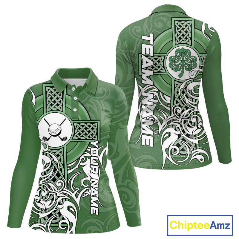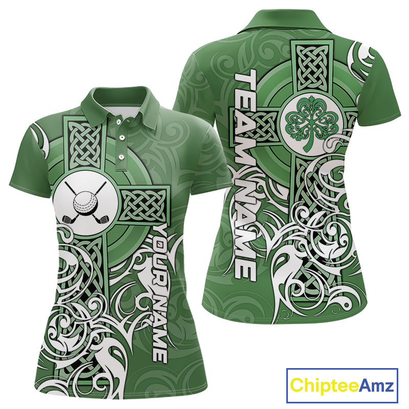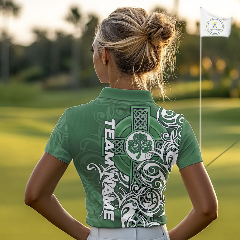 Green Irish Tribal Cross St Patrick's Day Womens Golf Polo Shirts Custom Lucky Golf Team Jerseys NQS11335