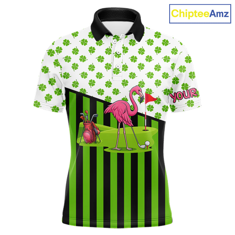 Green shamrock pattern flamingo Men golf polo shirts Custom St Patrick's Day golf outfit for men NQS11246