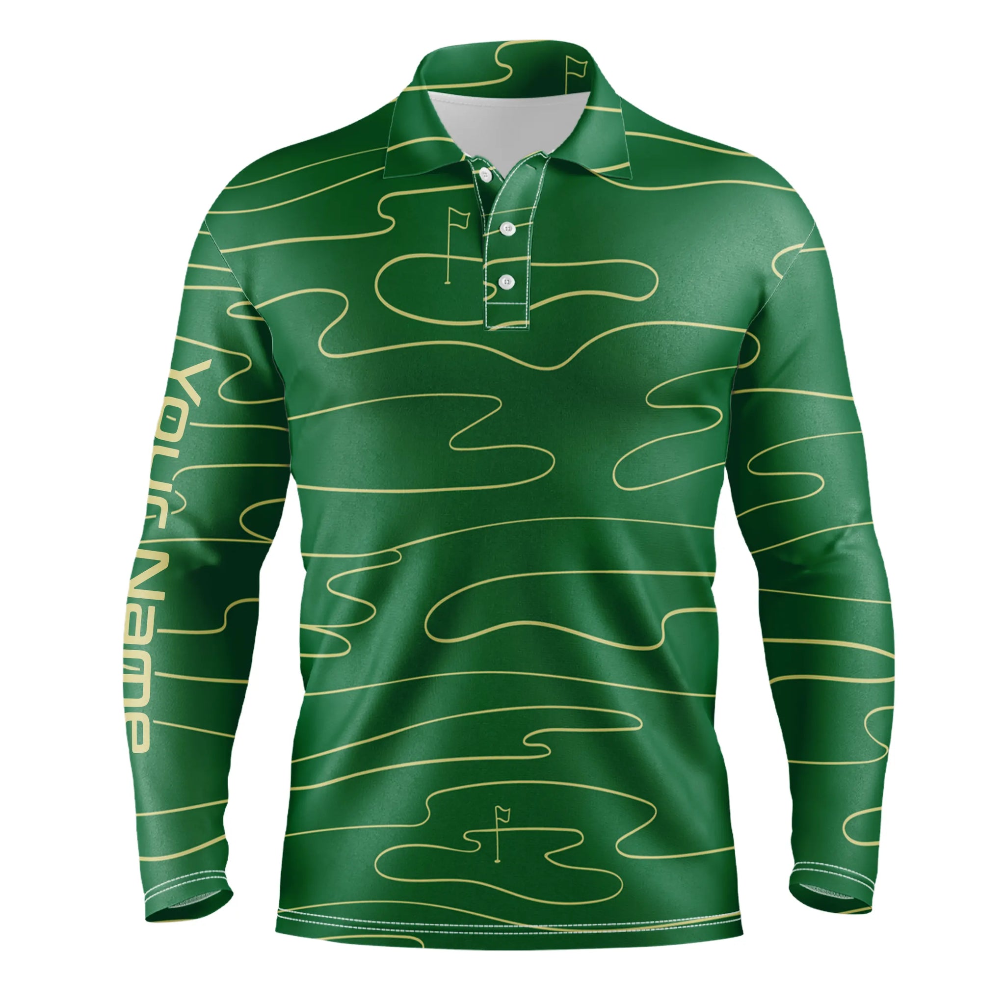 Mens golf polo shirts custom name mens green Golf Course pattern tournament golf polo shirts NQS5079