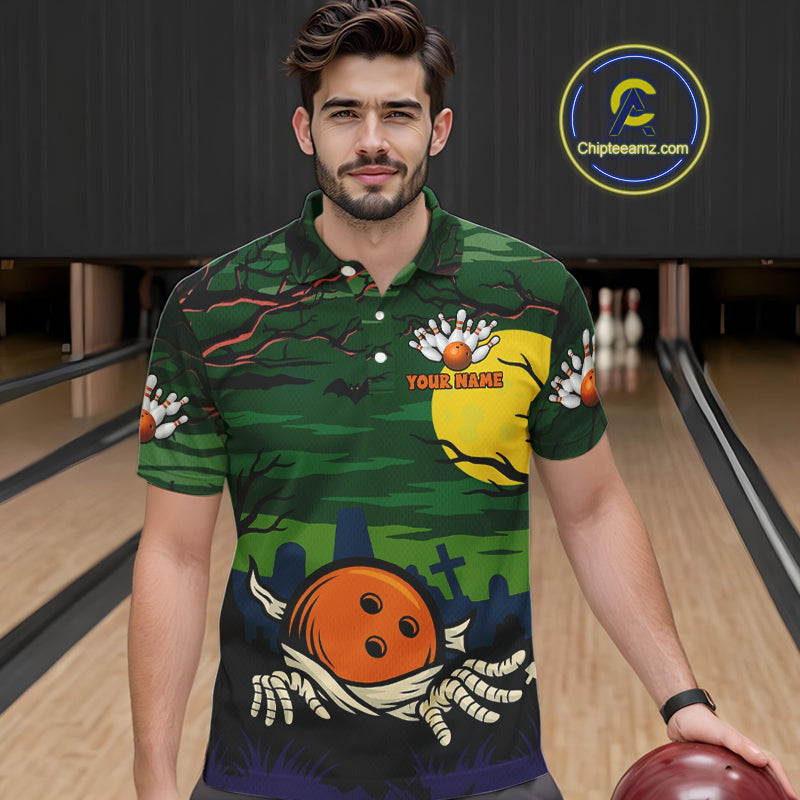 Funny Halloween Bowling Polo, Quarter Zip Shirts For Men Custom Halloween Team Bowling Jersey NQS10765