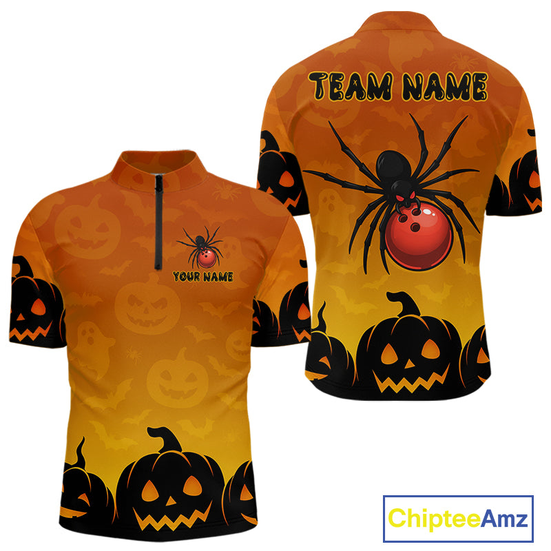 Personalized Orange Funny Spider Bowling Halloween Shirt For Men Custom Bowling Team Jersey TDM4925