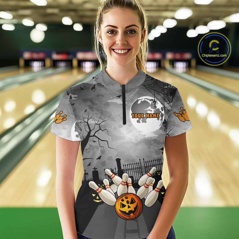 Funny Bowling Halloween Shirt For Women Custom Halloween Bowling Jersey Team Polo & 1/4 Zip TDM4949