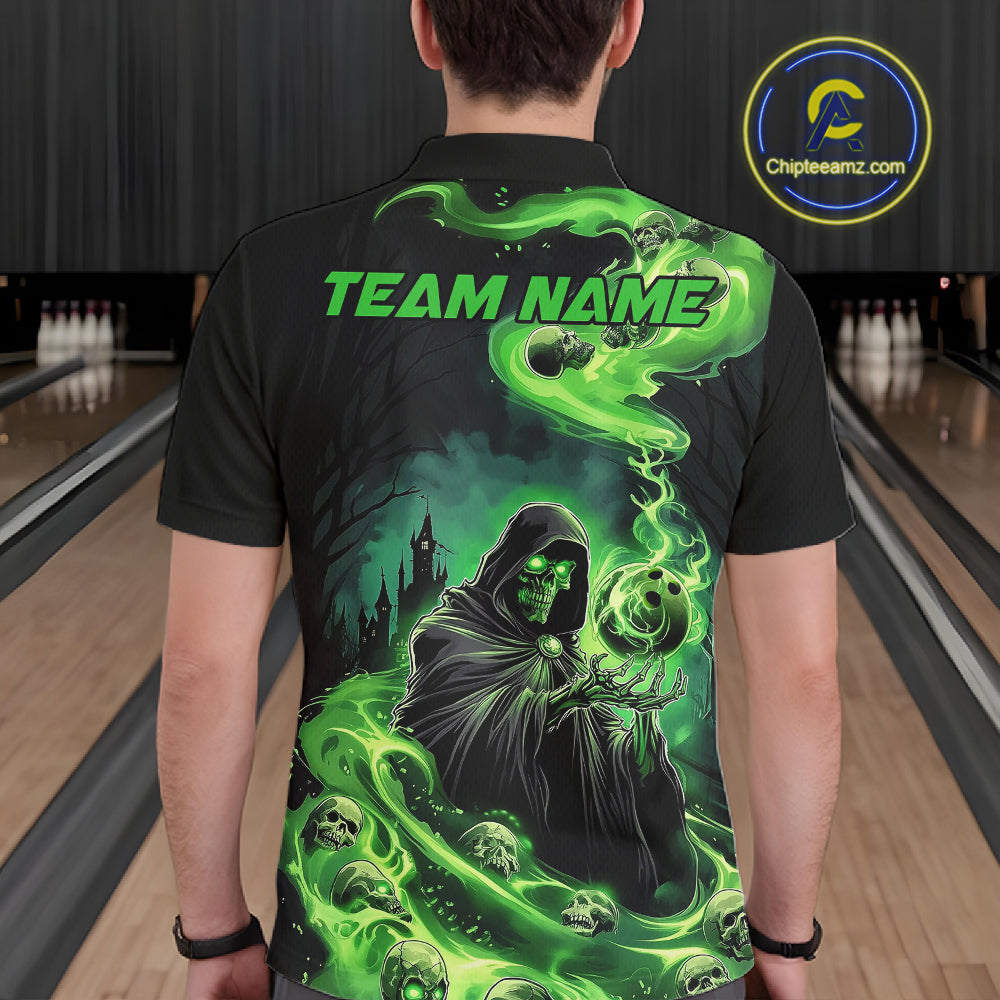 Black And Green Grim Reaper Custom Halloween Bowling Team Shirts For Men, Bowling Gifts IPHW7612