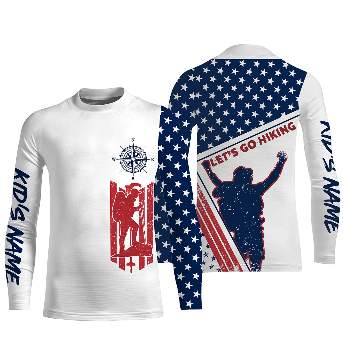 Personalized American Flag Hike Shirt for Men Let’s Go Hiking Jersey UPF30+ Compass in the Forest Cool Cloth| SP4