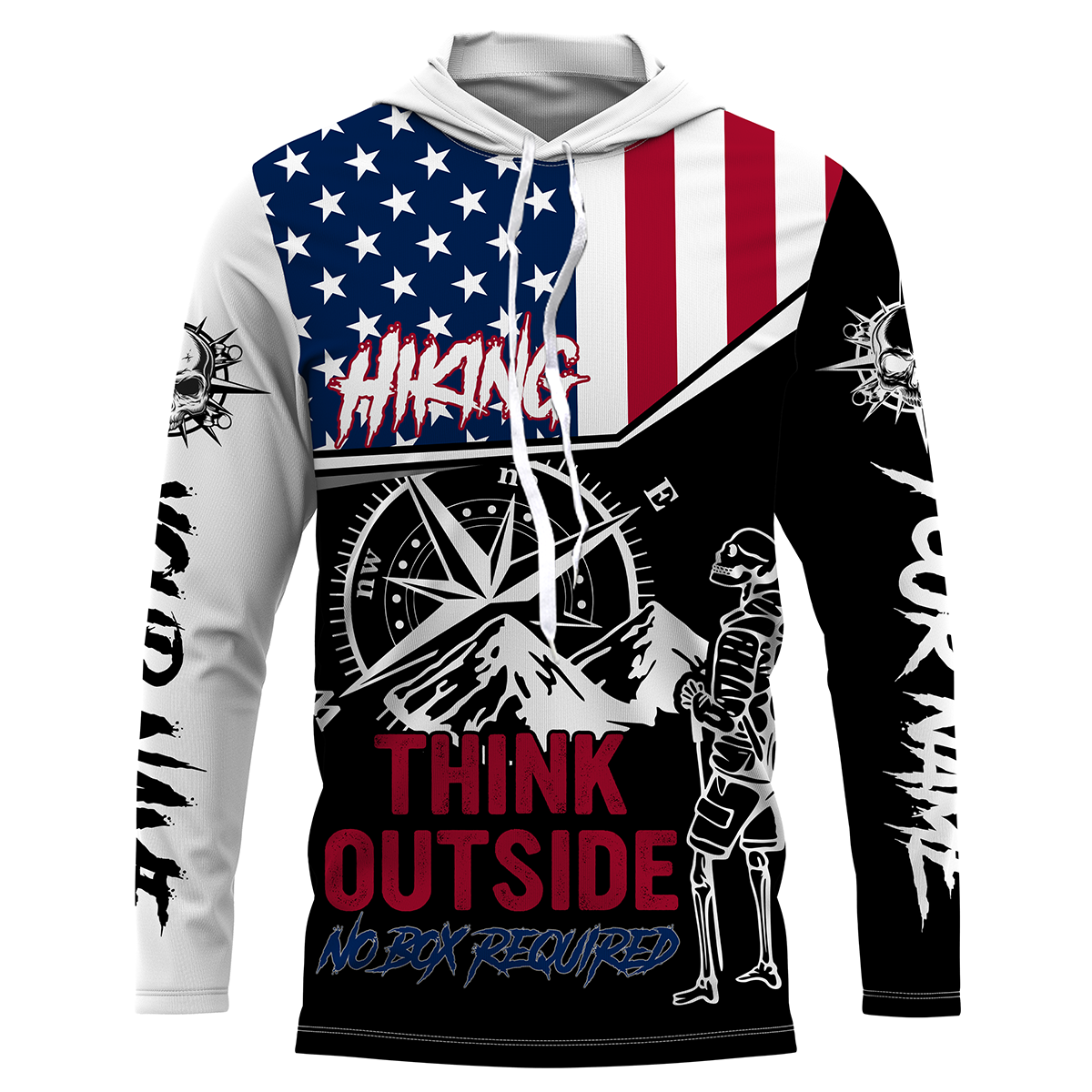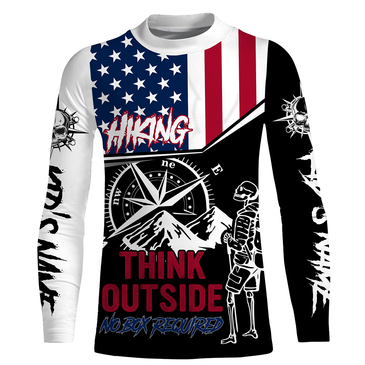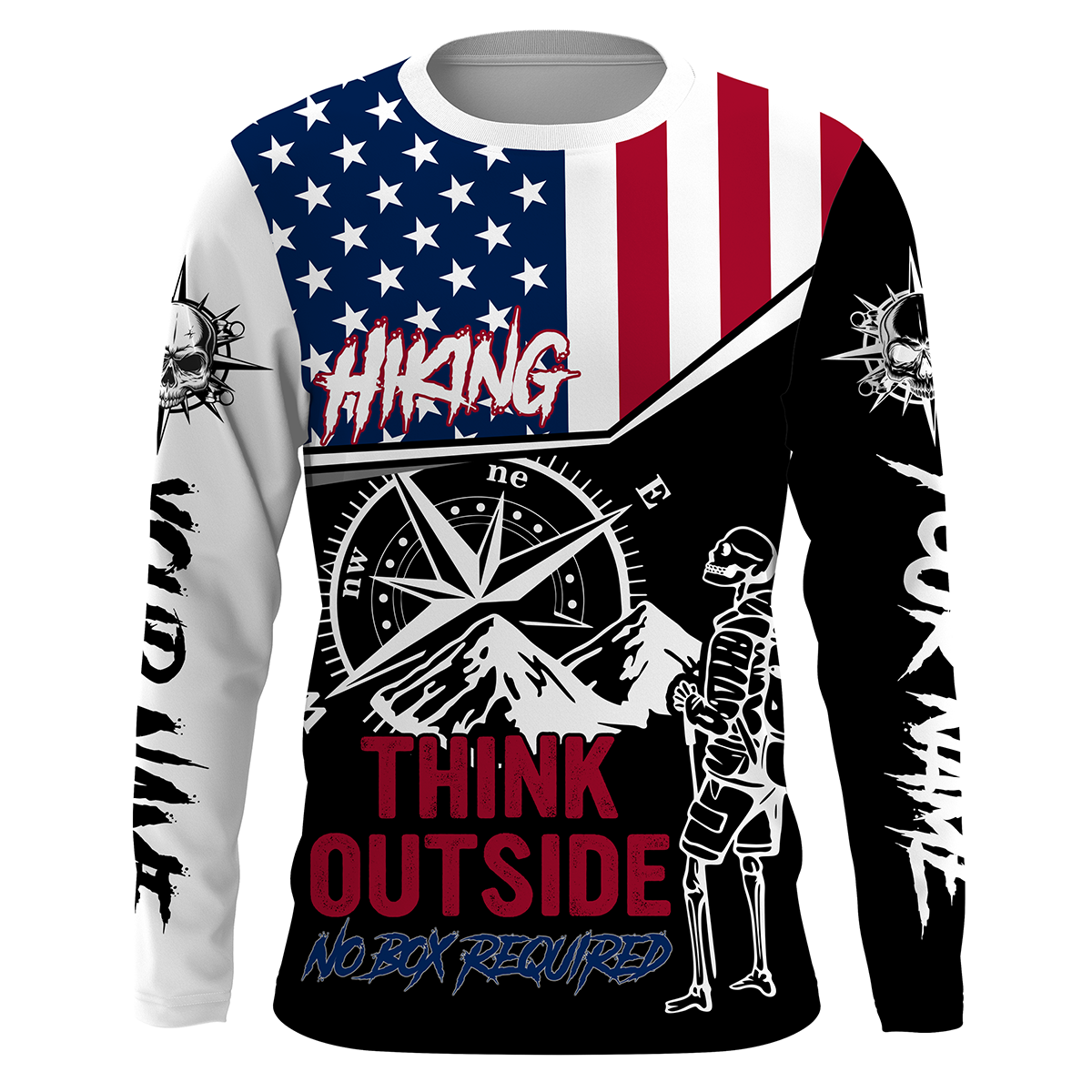Personalized American Flag Shirt Hiker T-shirt Skull Think Outside Hiking TShirt Patriotic Shirt UPF 30+| SP48