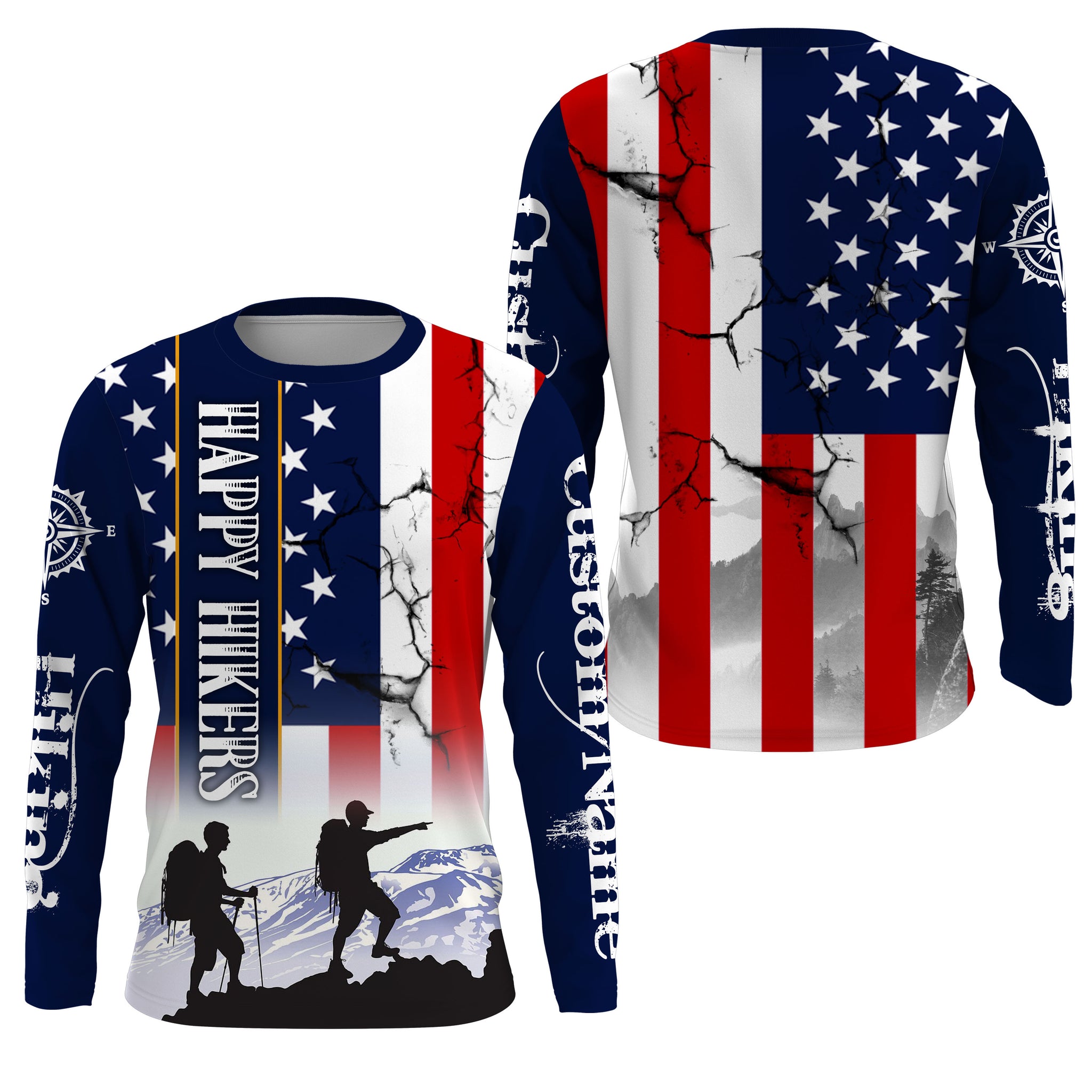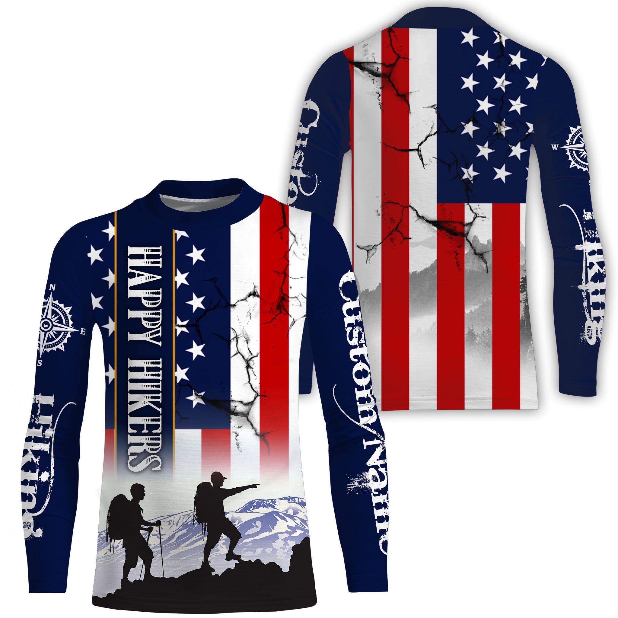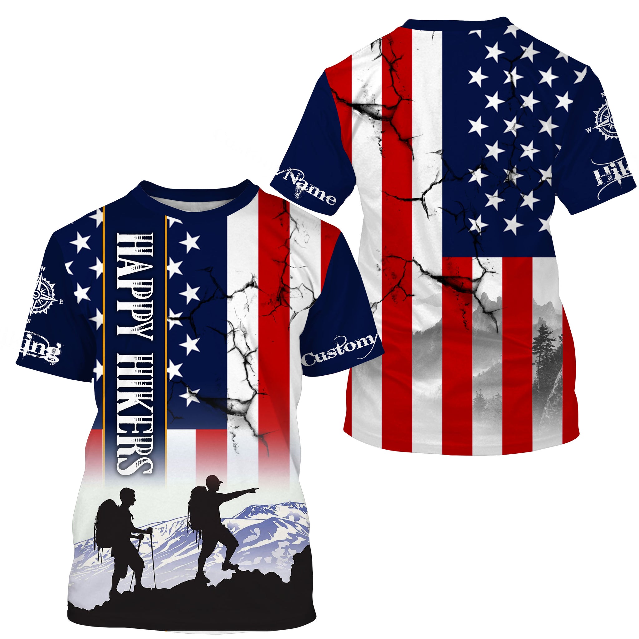 Personalized Happy Hikers Shirt American Flag Shirt Hiking T-shirt Best Gifts for Hikers, Father UPF 30+| SP125