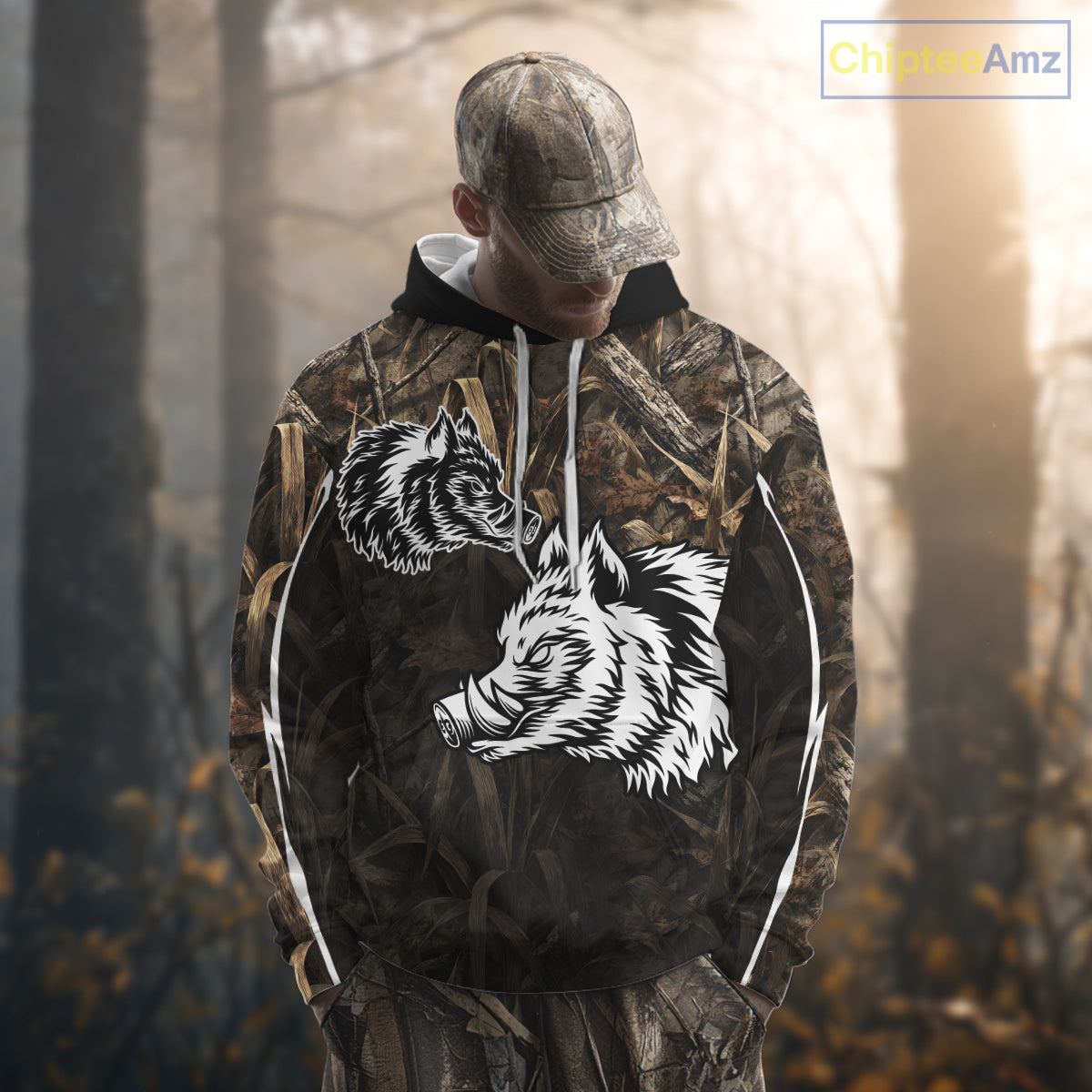 Custom Boar Hunting Full Camouflage 3D All Over Printed Shirts , Best Gift Ideas for Hunter NBT225