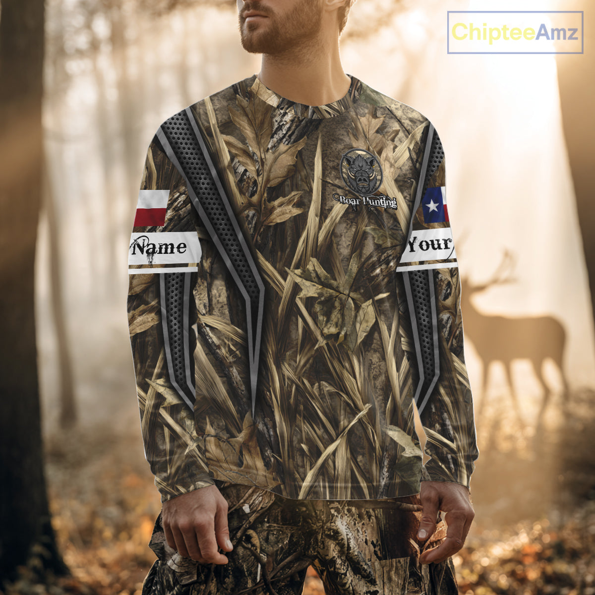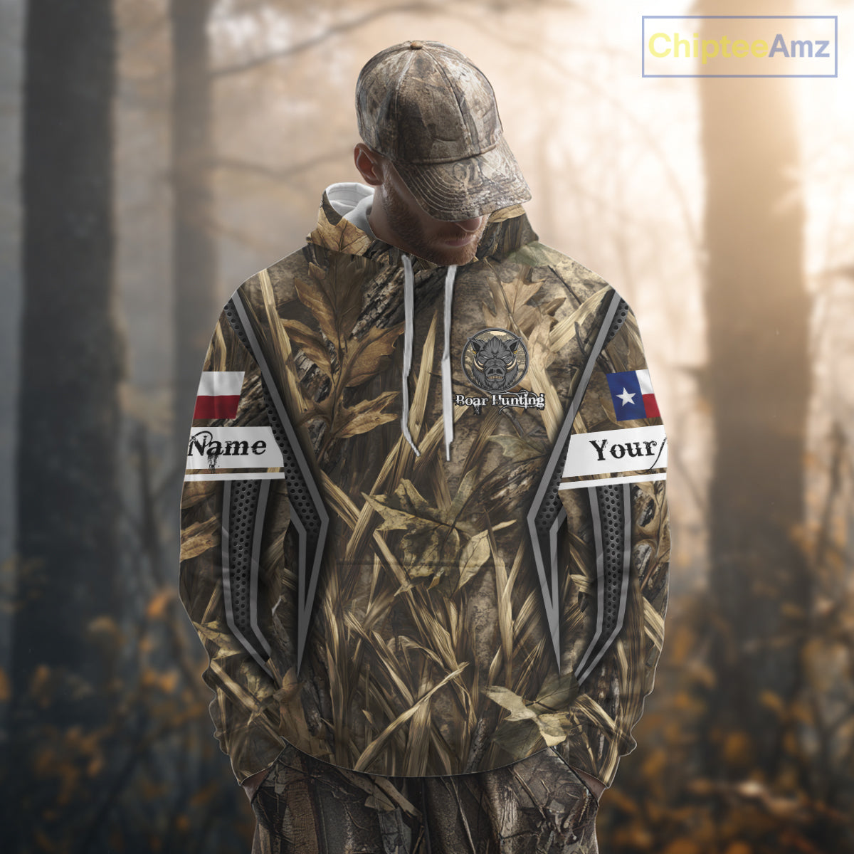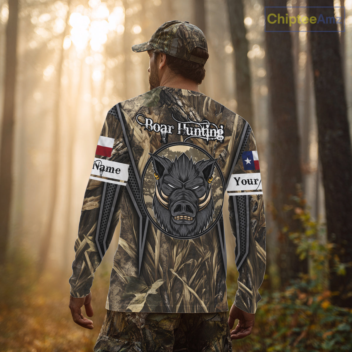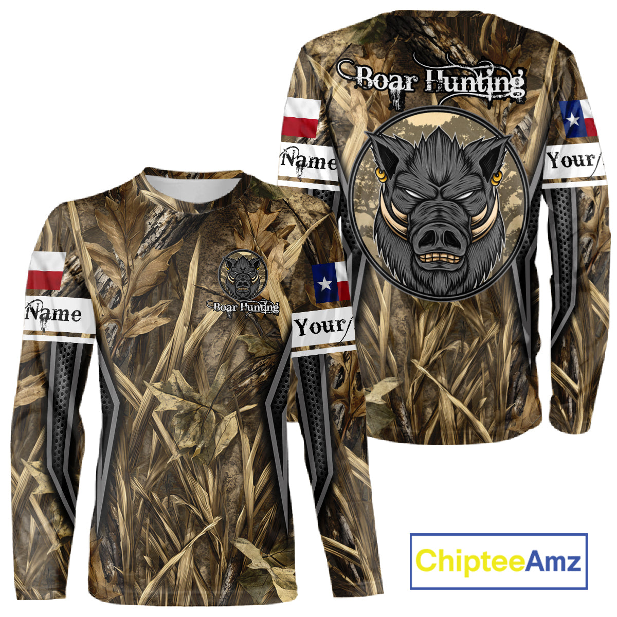 Texas Flag Wild Boar Hunting Camo Custom Name Shirts, TX Hog Hunting Shirt for Hunter NBT174
