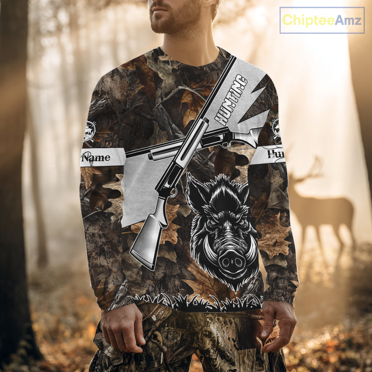 Wild Boar Hunting Rifle Vector 3D Printed Custom Name Shirts, Boar Hunting Clothing, Hunting Gifts NBT219