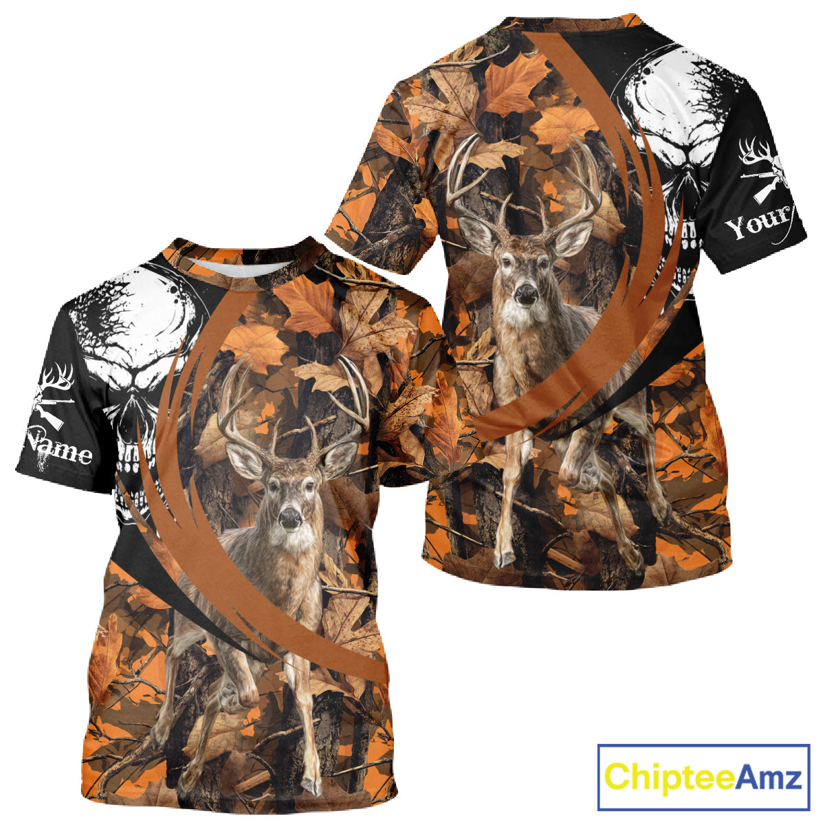 Deer Hunting Orange Camouflage Skull 3D Custom Name Shirts, Camouflage Deer Hunting Gifts NBT238