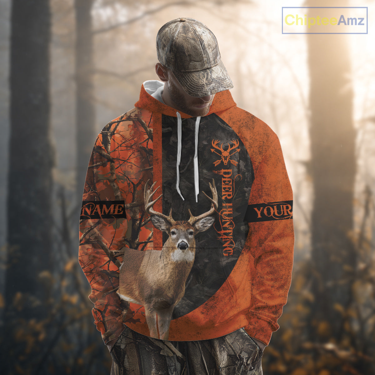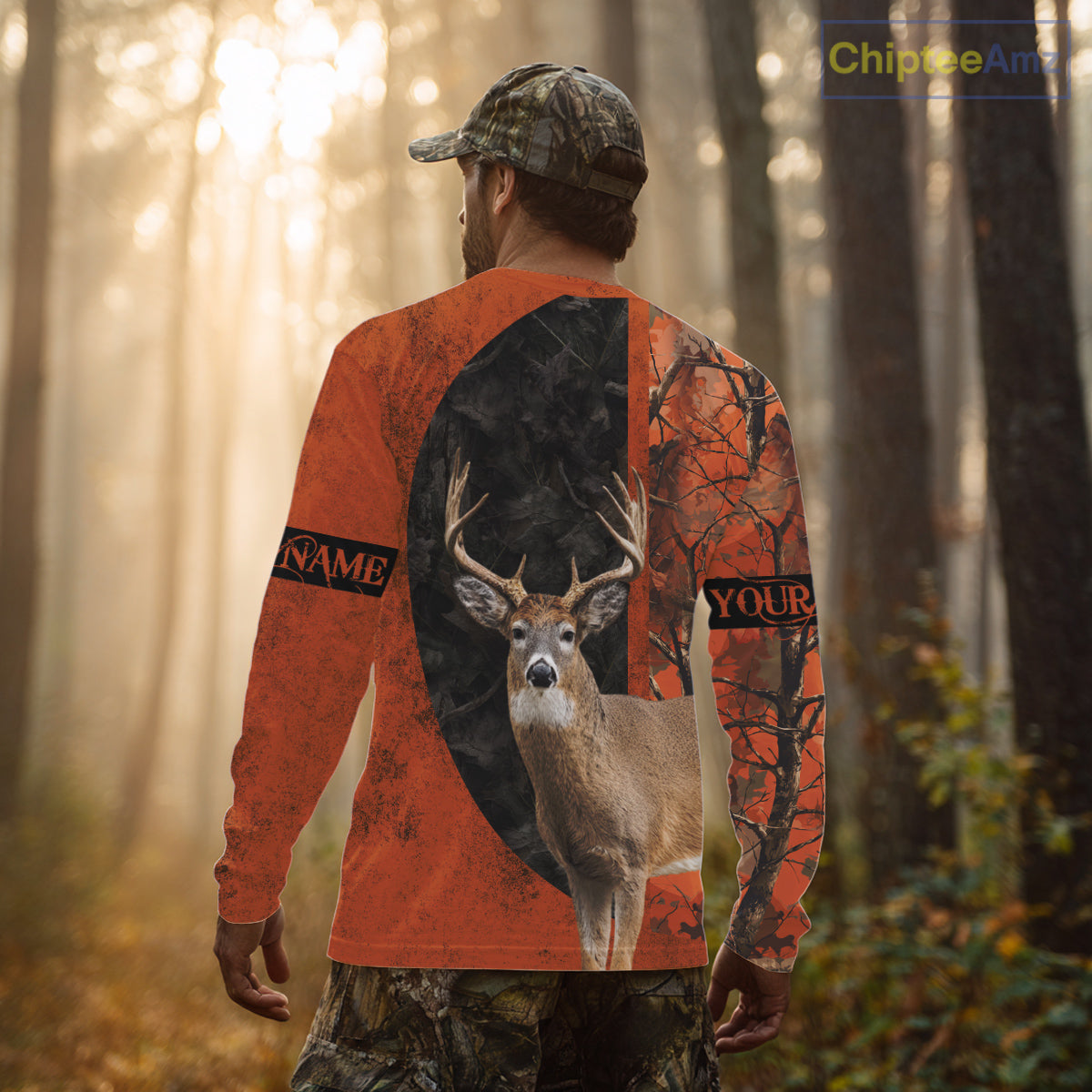 Whitetail Deer Hunting Orange Camo 3D All Over Printed Shirt, Custom Name Hunting Shirt NHT259
