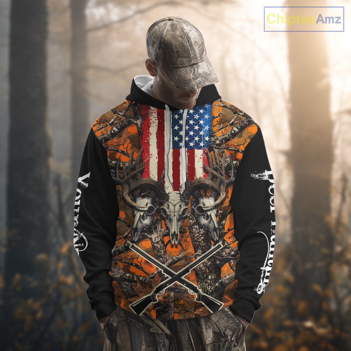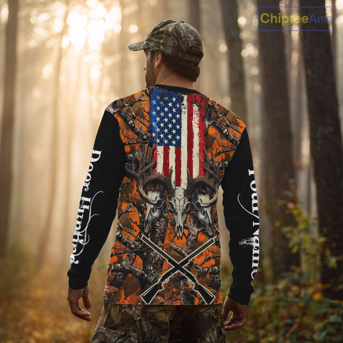 Custom Orange Camo US Flag Rifle Personalized Hunting Shirts, Deer Hunting Clothes, Hunting Gifts NBT282
