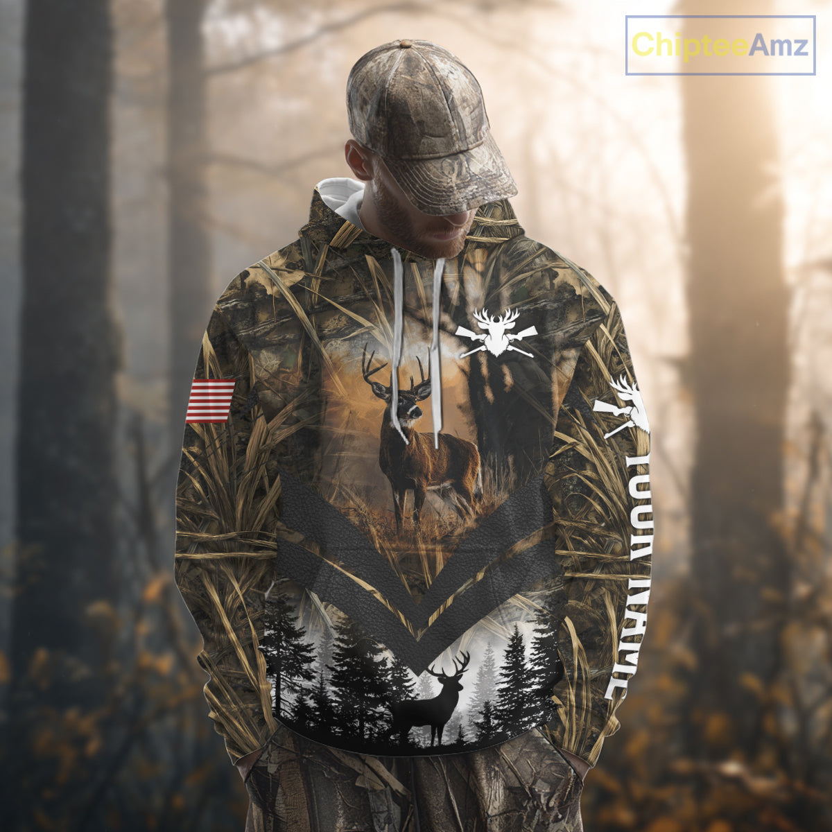 Deer Hunting Shirt US Flag 3D All Over Print, Custom Name Personalized Gift NHT298