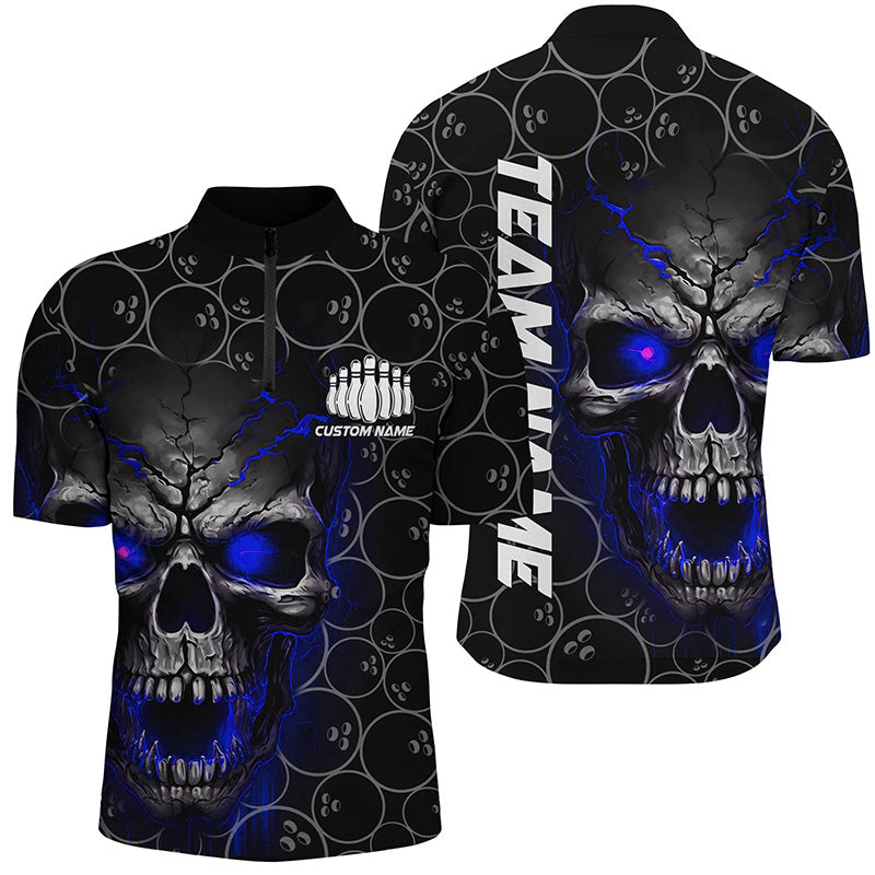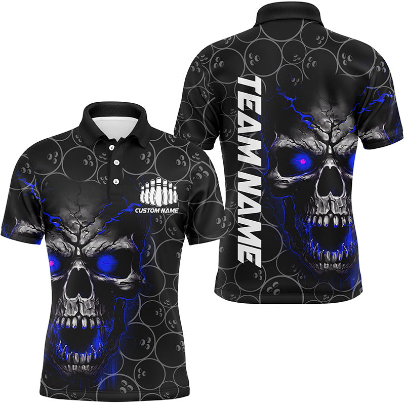 Custom Blue Skull Bowling Polo Shirts For Men, Bowling Pattern Bowling Team Jerseys IPHW5235