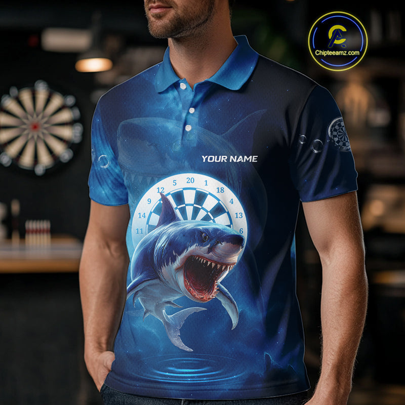 Personalized Fishing Shark & Dartboard Custom Dart Polo Shirts For Men, Dart Jerseys NYN0789
