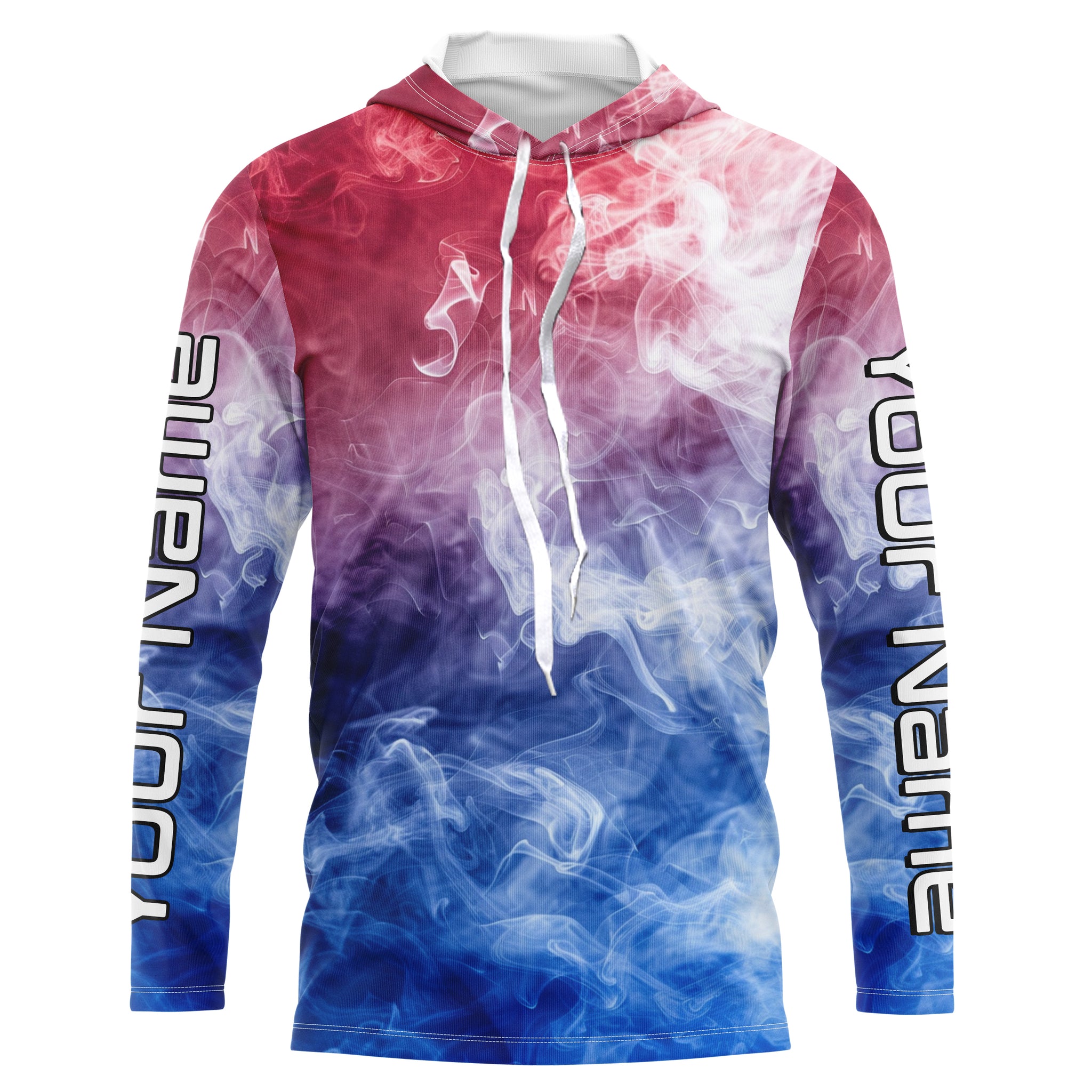Red, White And Blue Smoke Long Sleeve Performance Fishing Shirts, Patriotic Fishing Jerseys IPHW5968