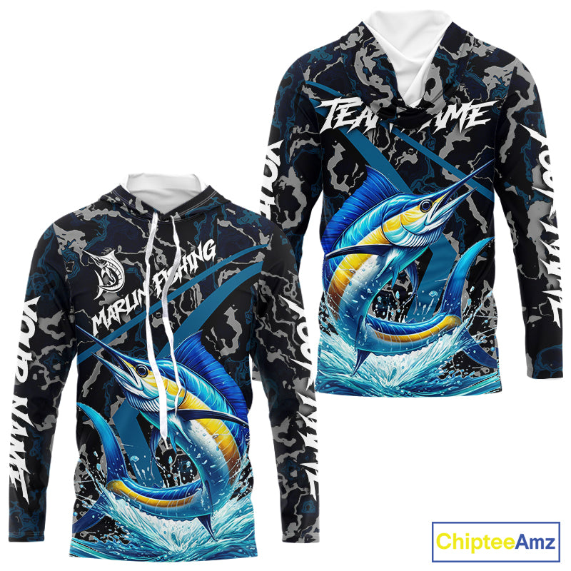 Custom Marlin Fishing Camo Long Sleeve Fishing Shirts, Personalized Marlin Fishing Team Jersey NQS10844