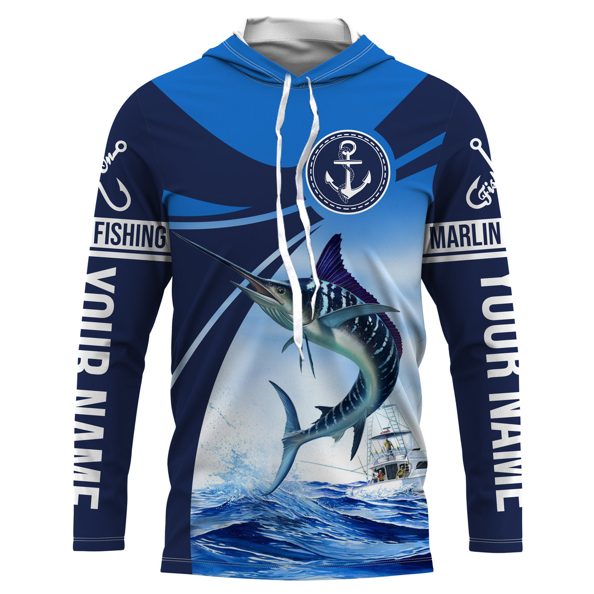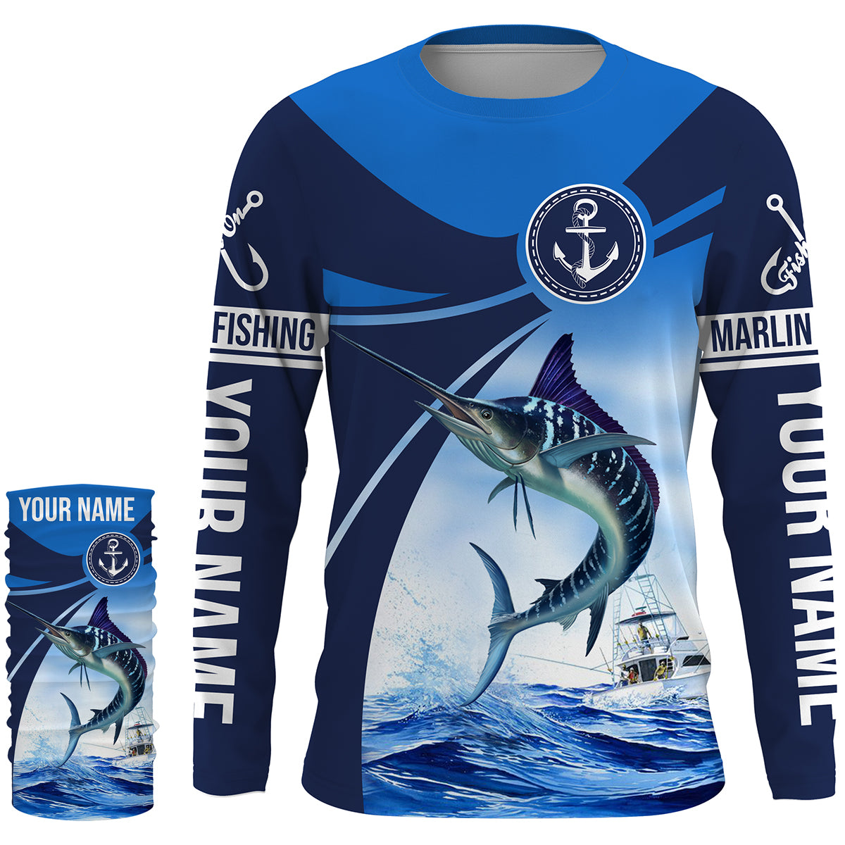 Marlin fishing blue sea underwater ocean saltwater Custom Name performance long sleeve fishing shirt NQS3744