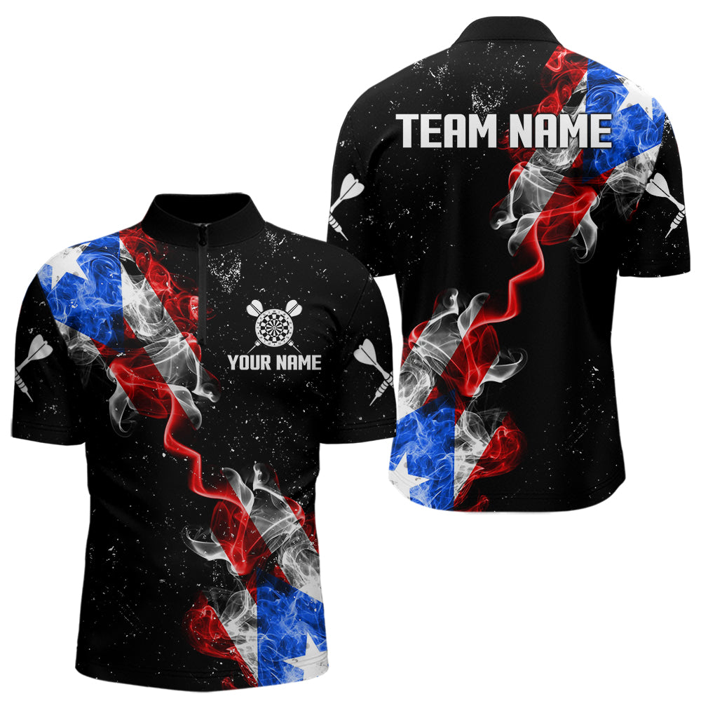 Customized Grunge Puerto Rico Flag Smoke Darts Polo & 1/4 Zip, Patriotic Darts Jerseys For Men TDM2497
