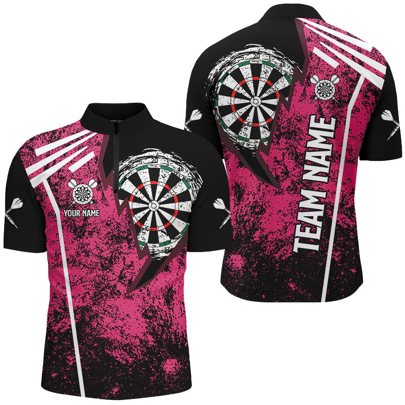 Personalized Grunge Men Darts Polo & Quarter Zip Shirts Custom Retro Darts Team Jerseys | Pink TDM2567