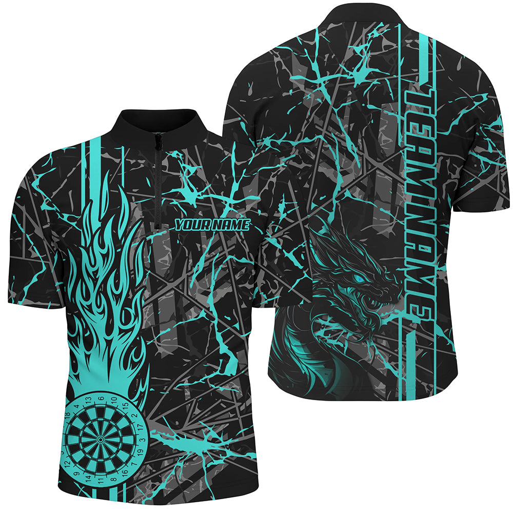 Turquoise Grunge Dart Jerseys For Men, Fire Flame Dart Board Custom Name Dragon Darts League Shirts TDM2603