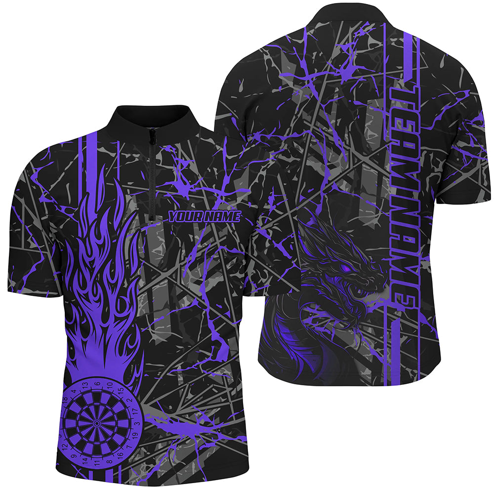 Purple Grunge Dart Jerseys For Men, Fire Flame Dart Board Custom Name Dragon Darts League Shirts TDM2605