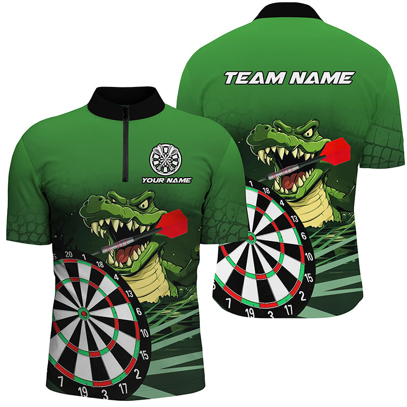Personalized Green Funny Crocodilian Darts Shirts For Men, Darts Team Jerseys, Darts Gifts TDM2608