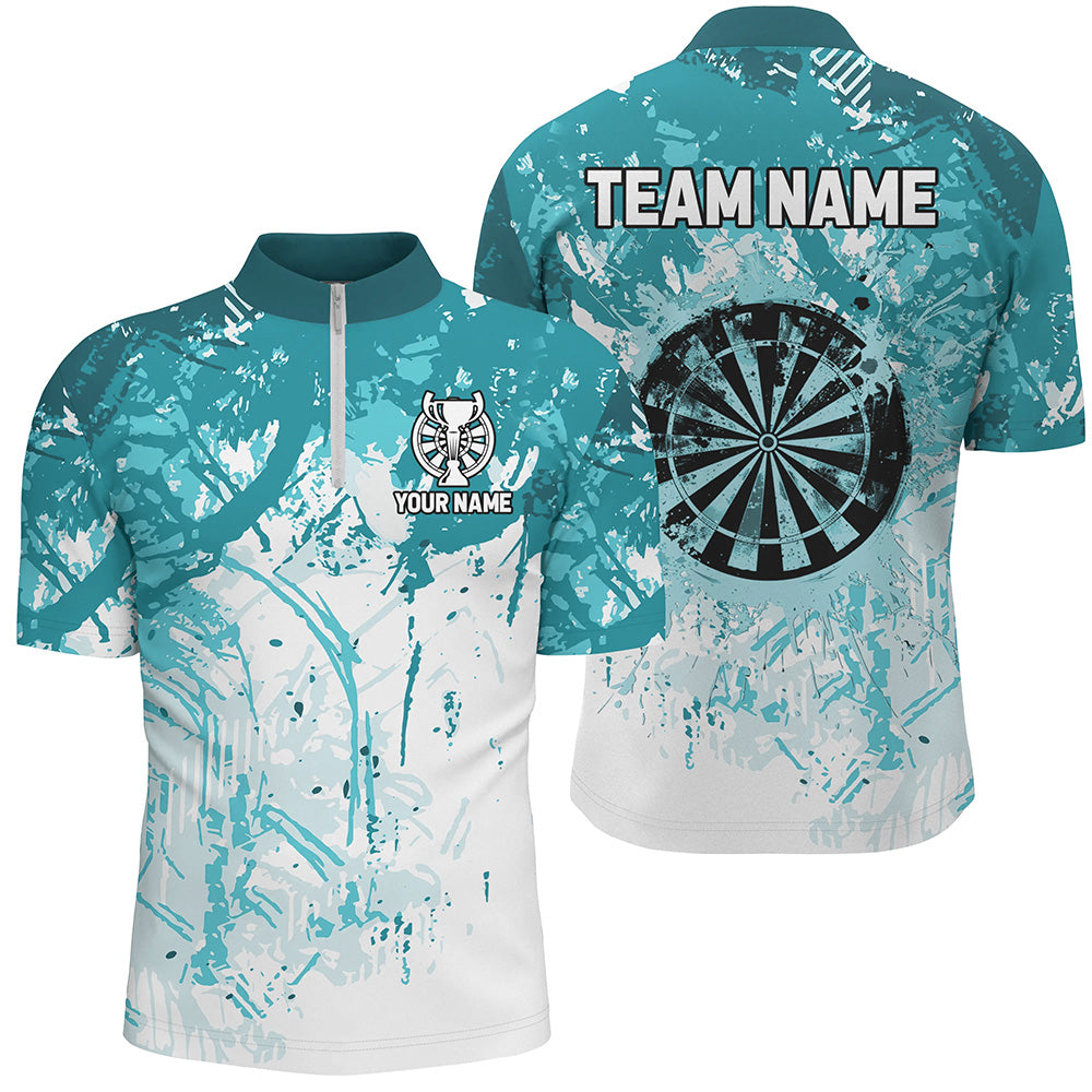 Personalized Turquoise Grunge Classic Darts Jerseys For Men Custom Team Darts Shirts Short Sleeve TDM2660