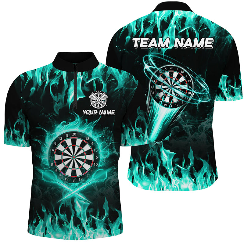 Turquoise 3D Printed Fire Flame Darts Shirts For Men Custom Lightning Darts League Team Jerseys TDM2661