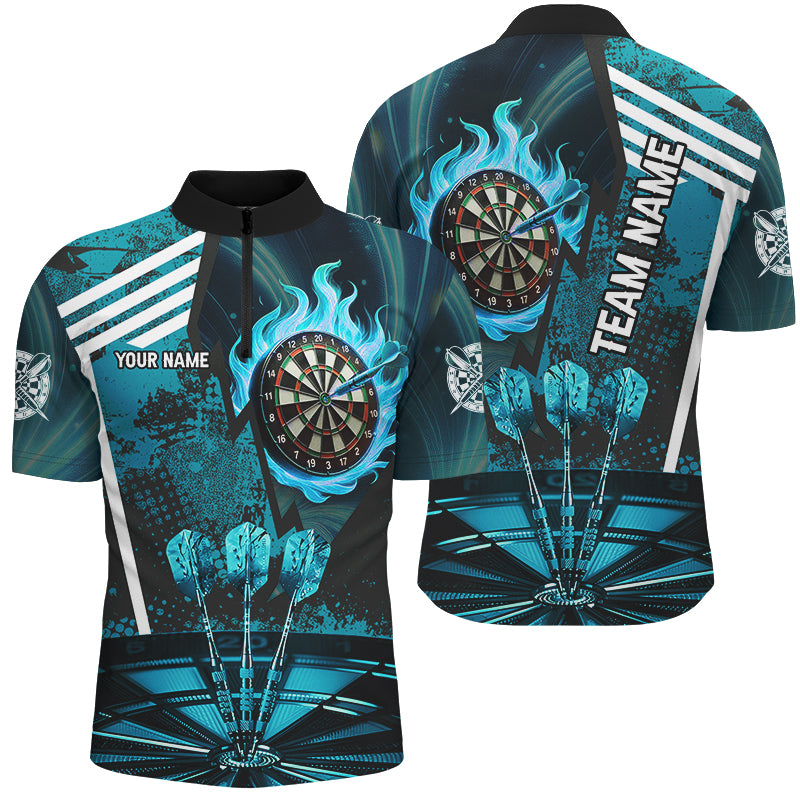 Turquoise Dartboard Fire Flame Hitting Target Custom Dart Shirts For Men, Darts League Team Jerseys TDM2702