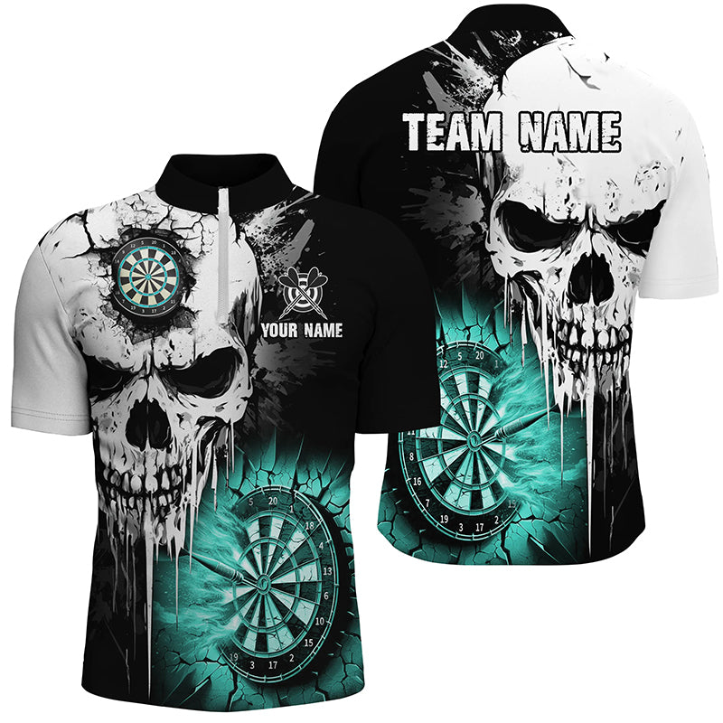 Personalized Grunge Skull Crack Wall Men Dart Shirts Custom Darts League Team Jerseys |Turquoise TDM2784
