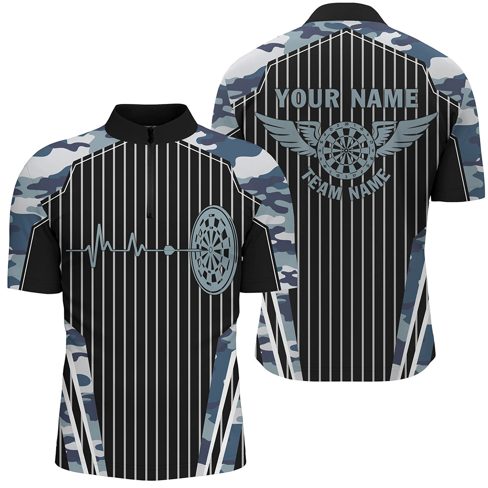 Blue Camo Dartboard Pulse Heartbeat Custom Men Dart Shirts, Funny Wings Cool Dart Team Jerseys TDM2788