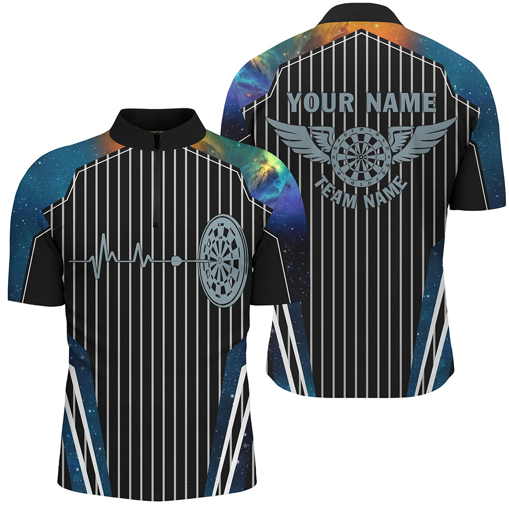 Blue Galaxy Dartboard Pulse Heartbeat Custom Men Dart Shirts, Funny Wings Cool Dart Team Jerseys TDM2789