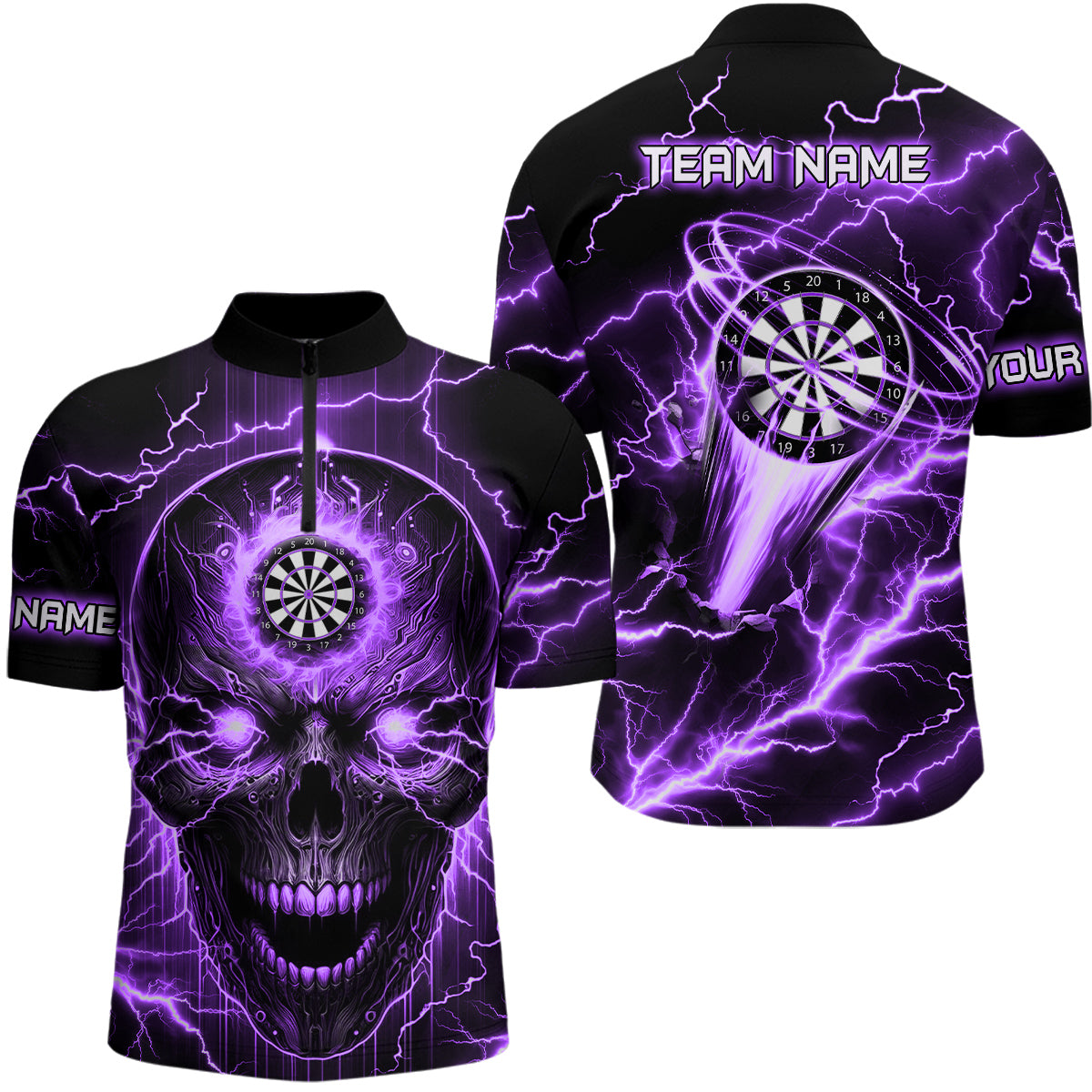Purple Darts Skull Men Polo, Quarter-Zip Shirt Custom Lightning Thunder Team League Dart Jerseys TDM2839
